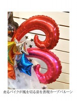 一番このアレンジで悩んだ部分が風を表現すること。やっぱりバイクって風を切って走っている姿がめちゃくちゃかっこいいじゃないですか!?このカーブ型のバルーンでその風を表現してみましたがとってもかっこよく仕上がったと思います。