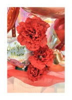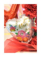 母の日用のアレンジなので『Love you mom』のバルーンを入れました。ポップな色合いできれいなハート型をしています。母の日には不可欠なバルーンですね。優しい母の日のプレゼントになるように願っています。