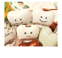 3本の歯のバルーンを入れました。特殊加工でお顔入りの風船となっています。泣き顔の歯バルーンは虫歯をイメージです。かわいい歯の3兄弟がやっぱりこのバルーンアレンジの主役のポイントですね。楽しさいっぱいです。