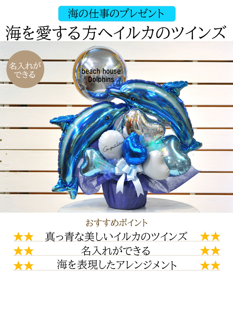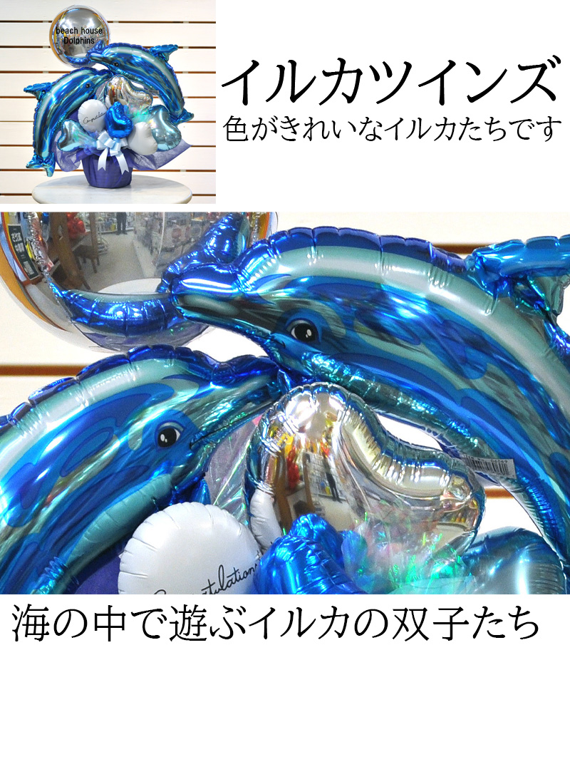 トップ > 開店祝い > 送料無料オリジナルバルーンギフト イルカツインズバルーンアレンジメント