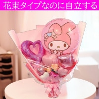 サンリオマイメロディのスタンディングのバルーン花束です。花束タイプなのにテーブル立っててくれるんです。バルーンなので花瓶に移し替えることもなく、箱から出したらそのまま飾ることができますよ。貰ったほうの手間ってやっぱり考えますよね?このタイプはそのような手間がないので楽に飾ることができます。キティちゃんやクロミちゃんに続いて人気のサンリオキャラクター。大人の女性に人気ですよね。