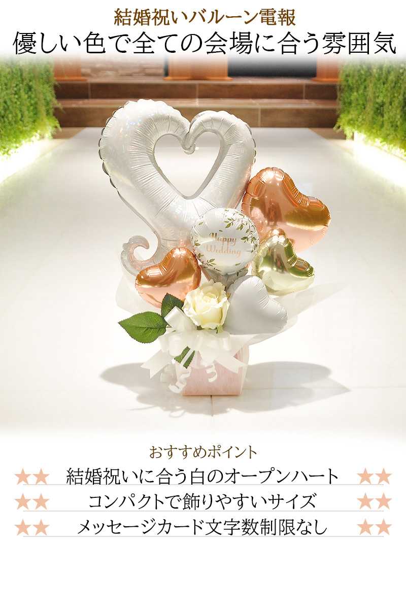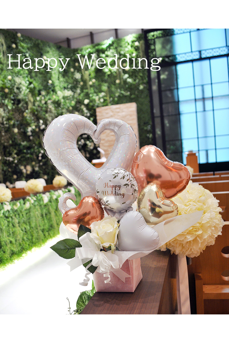 結婚式のお祝い 当店オリジナルバルーン電報 ホワイトハート バルーンアレンジメント