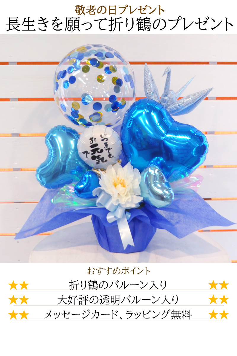 送料無料 敬老の日お祝い当店オリジナルバルーンギフト 青い鶴